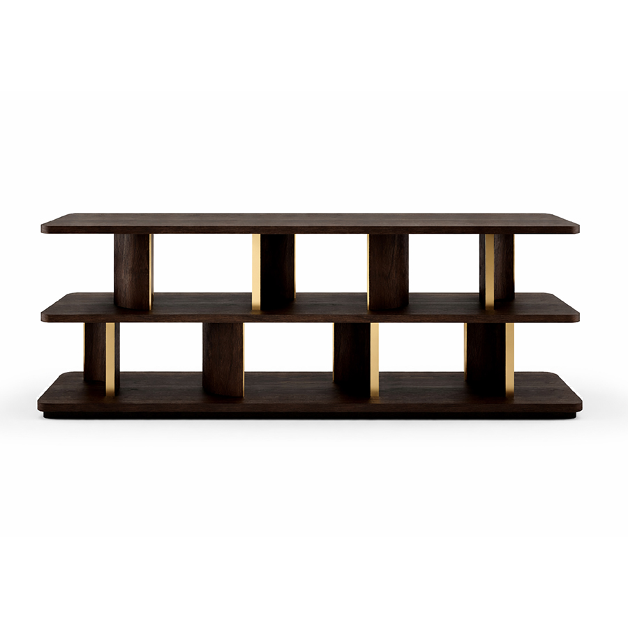 The interplay of solid wood volumes and open negative space gives the piece a sense of depth and visual movement, allowing it to function as both storage and statement. Designed to be viewed from all angles, the bookcase works equally well against a wall or as a room divider. Timeless in material yet distinctly modern in form, it brings structure, elegance, and quiet sophistication to any interior.