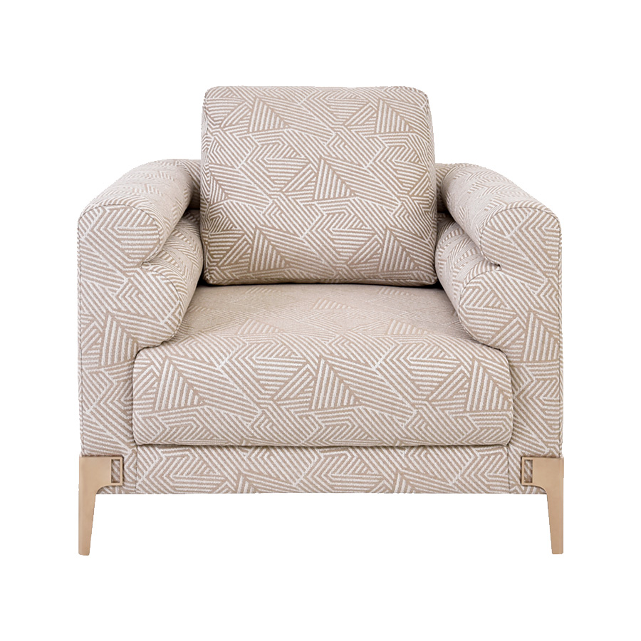 This elegant lounge chair is crafted with an upholstered seat, arms, back, and back cushion. This chair features a scallop detail that adds support and comfort to the interior of this lounge chair. The four legs showcase delicate smoked brass legs that add contrast to this stylish lounge chair.